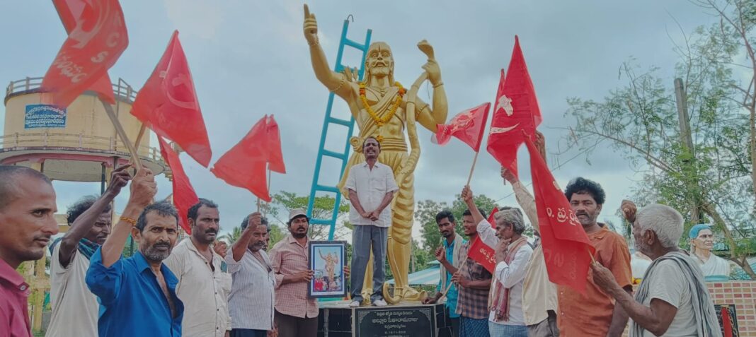 రవి అస్తమించని బ్రిటిష్ సామ్రాజ్యాన్ని గడగడలాడించిన, విప్లవ వీరుడు అల్లూరి సీతారామరాజు శత వర్ధంతి సందర్భంగా కిర్లంపూడి మండలం, బూరుగుపూడి గ్రామం స్థానిక హైవే పక్కన ఉన్న అల్లూరి విగ్రహానికి ఏపీ ఆర్ సి ఎస్ రాష్ట్ర ప్రధాన కార్యదర్శి కర్నాకుల వీరాంజనేయులు పూలమాలలు వేసి ఘనంగా నివాళులర్పించారు. ఈ సందర్భంగా ఆంజనేయులు మాట్లాడుతూ భారత స్వాతంత్ర ఉద్యమంలో ఆయన తెగింపు, కృషి ,త్యాగం ఎనలేనిదని , బ్రిటిష్ సామ్రాజ్యవాదానికి వ్యతిరేకంగా, ఈ దేశ ప్రజల స్వేచ్ఛ ,స్వతంత్రాల కోసం, ధన,మాన ,ప్రాణాలను కాపాడడం కోసం అతి చిన్న వయసులోనే, బ్రిటిష్ తుపాకీ గుళ్లకు గుండె నేదురోడ్డి ప్రాణాలర్పించిన మహనీయుడని కొనియాడారు. నేడు పాలకులు అల్లూరి ఆశయాలకు తూట్లు పొడుస్తూ, సామ్రాజ్యవాదుల కబంధహస్తాల్లోకి ఈ దేశాన్ని బందీ చేస్తున్నారని విమర్శించారు. మతాన్ని కవచంగా అడ్డుపెట్టుకుని, దేశంలోని జాతి సంపదను ఆదాని, అంబానీ వంటి స్వదేశీ, విదేశీ కార్పొరేట్ శక్తులకు దోచిపెడుతున్నారని ఆరోపించారు. ప్రజా, కార్మిక, రైతాంగ వ్యతిరేక విధానాల అవలంబిస్తూ ప్రజలపై అధిక ధరలు, పన్నులు, భారాలను మోపుతున్నారన్నారు. నిరుద్యోగశాతం పెరిగిపోయిందన్నారు. ప్రజలు పోరాడి సాధించుకున్న అనేక హక్కులను కాలరాస్తూ ప్రజలని నయా బానిసలుగా చేస్తున్నారన్నారు. దళిత, ఆదివాసి, మహిళలు మైనార్టీలపై హత్యలు, హత్యాచారాలు పెరిగిపోయాయి అన్నారు.యువత అల్లూరి పోరాట స్ఫూర్తితో కులాలకు, మతాలకూ అతీతంగా ఐక్యమై మరో స్వతంత్ర పోరాటానికి సిద్ధం కావాలని ఆయన పిలుపునిచ్చారు. ఈ కార్యక్రమంలో రైతు కూలి సంఘం జిల్లా సహాయ కార్యదర్శి కడితి సతీష్,నాయకులు సురేష్, డాన్ శీను, కర్రి కిట్టయ్య, బుర్ర రాఘవ, దాస పెద్ద అబ్బులు, వీరబాబు, పాఠం శెట్టి సూరిబాబు తదితరులు పాల్గొన్నారు.