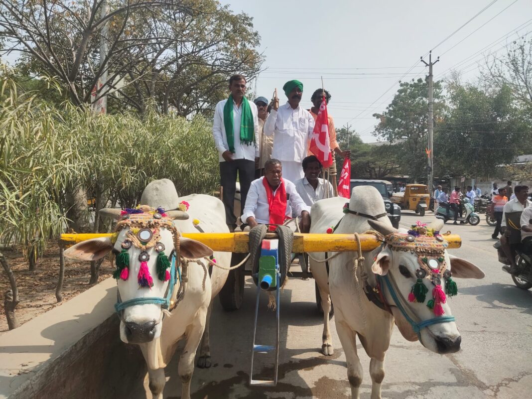సిపిఐ రైతుసంఘము వ్వవసాయకార్మికసంఘము జిల్లా సమితి ఆధ్వర్యంలో రైతాంగ సమస్యల పరిష్కారం కొరకు ఎద్దులబండ్లతో ర్యాలీతో నిర్వహించి తదనంతరము సీపీఐ తాడిపత్రి నీయోజకవర్గ కార్యదర్శి టి.రంగయ్య ధర్నా కార్యక్రమానికి అధ్యక్షత వహించగా ,