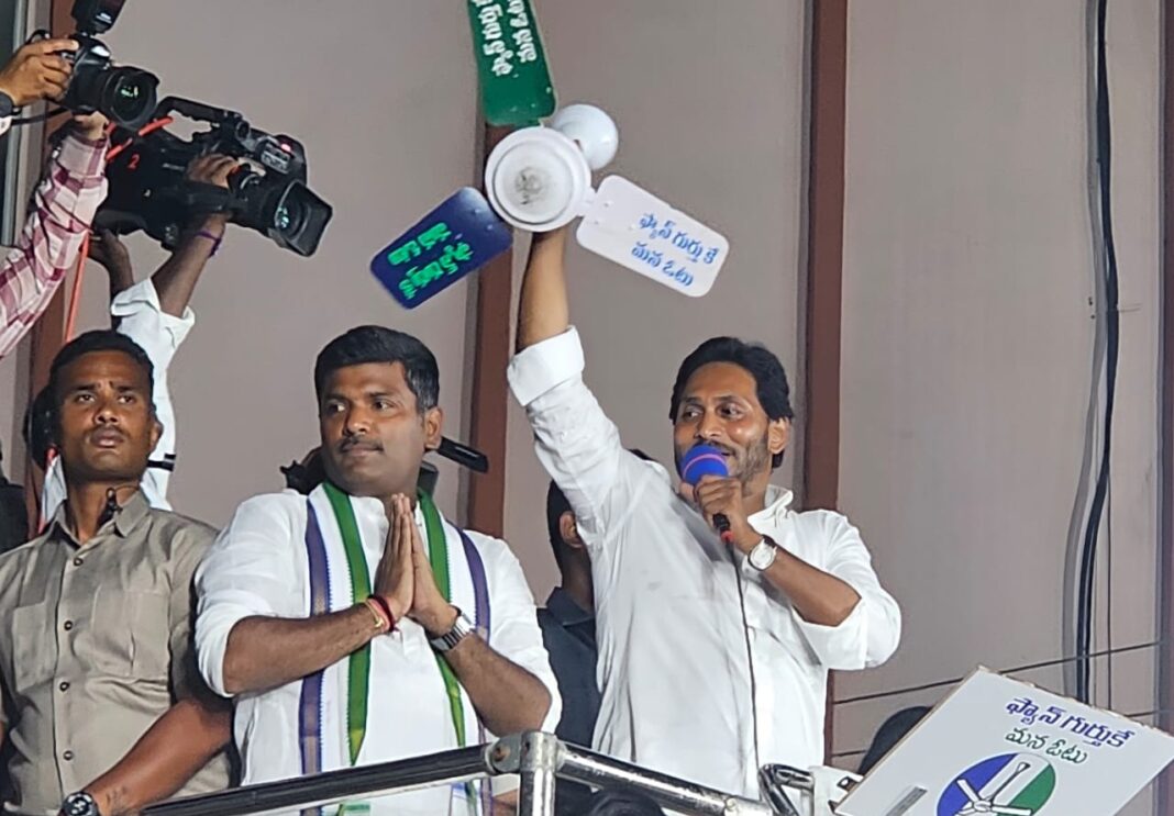 ఎన్నికల ప్రచారంలో భాగంగా గాజువాక నియోజకవర్గ వైఎస్ఆర్ కాంగ్రెస్ పార్టీ అభ్యర్థి గుడివాడ అమర్నాథ్ కు మద్దతుగా జగన్మోహన్ రెడ్డి సోమవారం ఇక్కడ ఏర్పాటు చేసిన భారీ బహిరంగ సభలో ప్రసంగించారు. ఈ సందర్భంగా ఆయన మాట్లాడుతూ పొరపాటున గాజువాక ప్రజలు ఎన్డీఏకి ఓటేస్తే, దాన్ని కేంద్ర ప్రభుత్వం ప్లాంట్ విక్రయానికి రెఫరెండంగా తీసుకుంటుందని జగన్ మోహన్ రెడ్డి చెప్పారు. అమర్నాధుని గెలిపిస్తే ఈ ప్రాంతానికి మంచి జరుగుతుందని ప్రజలంతా ఆలోచించి ఓటు వేయాలని ఆయన విజ్ఞప్తి చేశారు. రైల్వే జోన్ భవనాల కోసం భూములు ఇచ్చామని, కావాలనే వాళ్ళు తీసుకోవడం లేదని, కూటమి నాయకులు రాష్ట్ర ప్రజలపై కపట ప్రేమ చూపిస్తారని జగన్ మోహన్ రెడ్డి అన్నారు. ఎన్నికల్లో ఫ్యాన్ గుర్తుకు ఓటు వేసి గాజువాక అసెంబ్లీ నియోజకవర్గం అభ్యర్థి అమర్నాథ్ను, విశాఖ పార్లమెంటు అభ్యర్థి బొత్స ఝాన్సీ ని గెలిపించాలని ఆయన విజ్ఞప్తి చేశారు.అంతకుముందు మంత్రి అమర్నాథ్ మాట్లాడుతూ రాష్ట్రంలో ప్రజల కష్టాలు తెలుసుకునేందుకు సుదీర్ఘ పాదయాత్ర చేసిన జగన్మోహన్ రెడ్డి పేదల కష్టాలు తెలుసుకుని నవరత్నాలను ప్రవేశపెట్టి 99 శాతం అమలు చేశారని చెప్పారు.