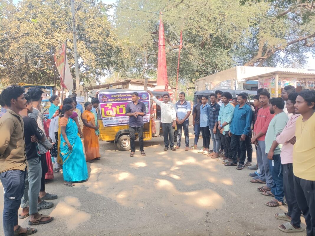 ఏజెన్సీ ప్రాంతాల్లోని గిరిజన మహిళలకు పోలీసు వారి ఆధ్వర్యంలో ఉద్యోగ కల్పన అవకాశాన్ని కల్పిస్తున్నారని, ఈ అవకాశాన్ని ప్రతీ ఒక్కరు సద్వినియోగం చేసుకోవాలని, ఎస్ ఐ వెంకట్ అన్నారు. స్థానిక రేఖపల్లి జంక్షన్ వద్ద ఎస్ ఐ స్థానిక ప్రజలతో ప్రేరణ కార్యక్రమంలో భాగంగా జాబ్ మేళా పై అవగాహన కార్యక్రమాన్ని బుధవారం నిర్వహించారు. ఈ సందర్భంగా ఆయన మాట్లాడుతూ అల్లూరి సీతారామరాజు జిల్లా పోలీసు వారి ఆధ్వర్యంలో, ప్రశాంతి ఎడ్యుకేషనల్ ఇన్స్టిట్యూషన్స్ వారి సహకారంతో నిరుద్యోగ గిరిజన మహిళలకు టాటా టెక్నాలజీస్ సంస్థ నందు ఉచిత శిక్షణ మరియు ఉద్యోగ కల్పన కార్యక్రమాన్ని నిర్వహిస్తున్నారని, ఈ జాబ్ మేళాలో అర్హులైన నిరుద్యోగ గిరిజన మహిళలను ఎంపిక చేసి, వారికి శిక్షణను ఇచ్చి ఉద్యోగ అవకాశం కల్పిస్తారని ఈ అవకాశాన్ని ప్రతీ నిరుద్యోగ గిరిజన మహిళలు సద్వినియోగం చేసుకోవాలని కోరారు.