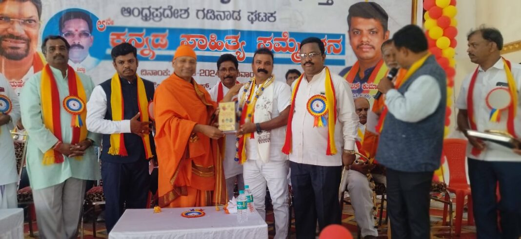 హిందూపురం టౌన్ :పురాతనమైన భాషలు ఎంతో మధురమైనవని పావగడ కు చెందిన జపానంద స్వామీజీ పేర్కొన్నారు. ఆదివారం హిందూపురం పట్టణంలోని కే హెచ్ ఫంక్షన్ హాల్ లో ఎనిమిదవ కన్నడ సాహిత్య సమ్మేళనం జరిగినది .ఈ కార్యక్రమానికి అధ్యక్షులుగా మడకశిర టీచర్ డాక్టర్ శివన్న వ్యవహరించగా ముఖ్య అతిథులుగా విచ్చేసిన పావగడ జపానంద స్వామి మాట్లాడుతూ, కన్నడ ఉళిసి కన్నడ బళిసి, కన్నడను కాపాడాలని , పురాతనమైన భాష అని మధురమైన తీయనైన భాష అని తెలిపారు .ఈ కార్యక్రమంలో కన్నడ సాహితీ పరిషత్ అంజన్ కుమార్ ,శ్రీనివాస్ శెట్టి గడినాడు కన్నడిగులపై, కన్నడ విశిష్టతపై రచించిన పుస్తకాన్ని ఆవిష్కరించారు. ఇందులో భాగంగా ఎంఈఓ గంగప్ప మధురమైన కన్నడ పాటలను ఆలాపించారు. అదేవిధంగా సరిహద్దులో కన్నడ ప్రాథమిక పాఠశాలలో విద్యార్థుల సమస్యల గురించి ఎంఈఓ వివరించారు.ఈ కార్యక్రమంలో వలస తిప్పే స్వామి ,నిరంజన్ తదితరులు పాల్గొన్నారు.