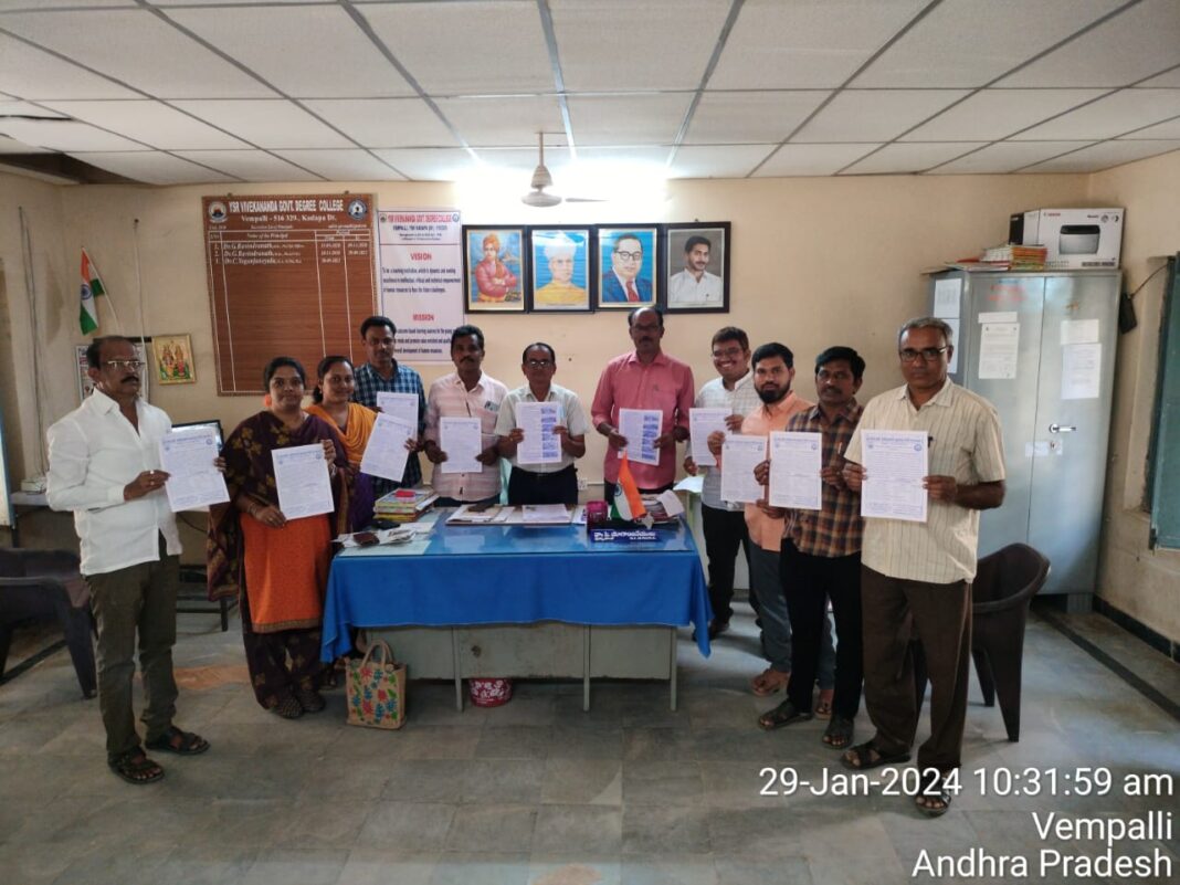 2024 –2025 సంవత్సరం సంబంధించి కళాశాల అడ్మిషన్ల కొరకు స్థానిక వైయస్సార్ వివేకానంద ప్రభుత్వ డిగ్రీ కళాశాల ప్రిన్సిపాల్ డాక్టర్ చెరసాల యోగాంజనేయులు మరియు అధ్యాపక బృందం సోమవారం అడ్మిషన్ల కొరకు ప్రచార కరపత్రాలను ప్రారంభించారు. అడ్మిషన్లకు సంబంధించి కరపత్రమును సోమవారం కళాశాలలో ప్రిన్సిపాల్ మరియు ఇతర అధ్యాపకులందరూ పాల్గొని ప్రారంభించారు. తదనంతరం వైస్ ప్రిన్సిపాల్ నాగేంద్ర, చరిత్ర అధ్యాపకులు బాలకొండ గంగాధర్ , లైబ్రేరియన్ మాధవరావు, గణిత శాస్త్ర అధ్యాపకులు డాక్టర్ సుధాకర్ మరియు రాజారెడ్డి సంయుక్తంగా చక్రాయపేట మండలంలోని వివిధ జూనియర్ కళాశాల ను సందర్శించి అడ్మిషన్ల కొరకు ప్రచారం చేశారు. మండల కేంద్రంలోని ప్రభుత్వ జూనియర్ కళాశాల మరియు కస్తూరిబా బాలికల జూనియర్ కళాశాలలను సందర్శించి విద్యార్థులతో ముఖాముఖి సమావేశం నిర్వహించారు. ఇందులో భాగంగా వారు మాట్లాడుతూ 25 కోట్ల రూపాయలతో నూతన భవనం నిర్మించబడి అత్యాధునిక సదుపాయాలతో వేంపల్లి కేంద్రంగా డిగ్రీ కళాశాల ప్రారంభమవుతున్నదని గ్రామీణ విద్యార్థులు దీనిని సద్వినియోగం చేసుకోవాలని కోరారు. కళాశాలలో ఎంతో అనుభవంతో పాటు యూజీసీ నిర్దేశించిన పీహెచ్డీ , యుజిసి నెట్ రాష్ట్ర ప్రభుత్వం సెట్ పరీక్షలలో ఉత్తీర్ణులైన వారితో కళాశాలలో మంచి బోధనా సౌకర్యం ఉందని వారు విద్యార్థులు తెలియజేశారు. అంతేగాకుండా విద్యార్థులలో పరిపూర్ణమైన జ్ఞానాన్ని అందించే ఎన్ఎస్ఎస్ మరియు క్రీడా రంగాలలో వేంపల్లి ప్రభుత్వ డిగ్రీ కళాశాల స్థాపించిన మూడు సంవత్సరాల లోపల విశ్వవిద్యాలయంలోనూ కడప జిల్లాలోనూ మంచి పేరు సంపాదించిందని ఈ సదవకాశాన్ని విద్యార్థులు ఉపయోగించుకొని వారి యొక్క బంగారు భవిష్యత్తుకు బాటలు వేసుకోవాల్సిందిగా విద్యార్థులకు తెలియజేశారు.