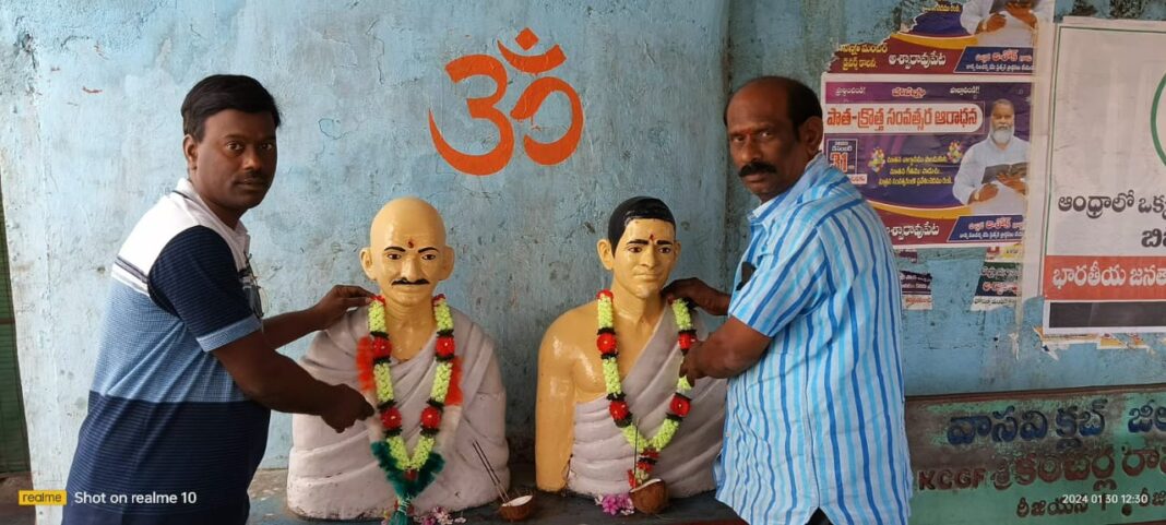 మన జాతిపిత మహాత్మా గాంధీ వర్ధంతి సందర్భంగా జీలుగుమిల్లి ప్రధాని కూడలి అయినటువంటి జగదాంబ సెంటర్లో మహాత్ముని విగ్రహం వద్ద స్వాతంత్ర సమరయోధుడు శాంతి దూత జాతిపిత మహాత్మా గాంధీ కి అలాగే ఆంధ్రప్రదేశ్ రాష్ట్ర అవతరణ కోసం అసువులుభాషినటువంటి పొట్టి శ్రీరాములు కి పూలమాలతో సత్కరించారు. మరియు ఆయనకు స్థానిక గ్రామ ప్రజలు ఆటో యూనియన్ వారు వర్తక వ్యాపారస్తులు మరియు ఆటో యూనియన్ నాయకులు ప్రభుత్వ ఆసుపత్రి వైద్యు నిపుణులు సత్యనారాయణ రాజు పాల్గొన్నారు. జీలుగుమిల్లి వర్తక వ్యాపారస్తుల అధ్యక్షులు కోరు కొండ సూరిబాబు మాతం శెట్టి కిషో చిట్లూరి చందర్రావు కొనకళ్ళవికాస్ కొనకళ్ళ ముత్తయ్య. కక్కిరాల జగదీష్ కూడా పాల్గొని మహాత్మునికి ఘన నివాళులు అర్పించారు. ప్రభుత్వ ఆసుపత్రిలో కుష్టు రోగుల కోసం సహాయ సహకారాలు అందించారు.