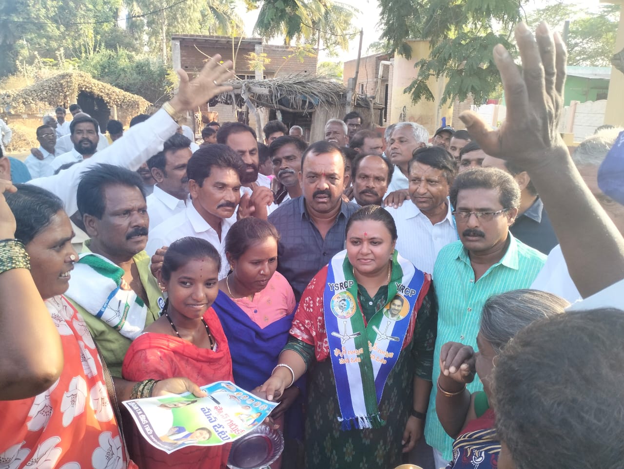 లేపాక్షి: హిందూపురం అసెంబ్లీ నియోజకవర్గానికి వైయస్సార్ కాంగ్రెస్ పార్టీ అభ్యర్థిగా ఎన్నికల బరిలో నిలుస్తున్నానని, మీ ఆడబిడ్డగా నన్ను ఆశీర్వదించి, గెలిపించాలని దీపికా వేణు ఓటర్లను అభ్యర్థించారు. ఆదివారం మండల పరిధిలోని మానేపల్లి , గౌరి గాని పల్లి, వెంకటాపురం గ్రామాల్లో వైకాపా మండల కన్వీనర్ నారాయణ స్వామి ఆధ్వర్యంలో వైఎస్ఆర్ కాంగ్రెస్ పార్టీ నాయకులు ,కార్యకర్తలు ప్రచార కార్యక్రమాన్ని నిర్వహించారు. ఈ సందర్భంగా ప్రతి ఇంట వైయస్ జగన్మోహన్ రెడ్డి ప్రవేశపెట్టిన సంక్షేమ పథకాలను, వాటి అమలును ప్రజలకు వివరించారు. ఈ సందర్భంగా వైకాపా అసెంబ్లీ అభ్యర్థి దీపిక వేణు మాట్లాడుతూ, ప్రజలు జగన్మోహన్ రెడ్డి ని మరోసారి ముఖ్యమంత్రిగా చేసేందుకు సిద్ధంగా ఉన్నారన్నారు. మరోసారి ముఖ్యమంత్రిగా వైయస్ జగన్మోహన్ రెడ్డి పదవీ బాధ్యతలు చేపడితేనే సంక్షేమ పథకాలు అమలు అవుతాయని పేర్కొన్నారు. గతంలో చంద్రబాబు నాయుడు ముఖ్యమంత్రిగా ఉన్నప్పుడు పలు సంక్షేమ పథకాలను అమలు చేస్తానని హామీ ఇచ్చి, ముఖ్యమంత్రిగా పదవీ బాధ్యతలు చేపట్టిన వెంటనే వాటిని మరిచారన్నారు. రాష్ట్రవ్యాప్తంగా అన్ని వర్గాల ప్రజలకు పలు సంక్షేమ పథకాలను అమలు చేసిన ఘనత ఆయనకే దక్కిందన్నారు. త్వరలో జరగనున్న ఎన్నికల్లో మహిళలకు వైయస్సార్ కాంగ్రెస్ పార్టీ పెద్దపీట వేసింది అన్నారు. వైకాపా అసెంబ్లీ అభ్యర్థిగా దీపికా వేణు, పార్లమెంట్ అభ్యర్థిగా బోయ శాంతమ్మను ముఖ్యమంత్రి వైయస్ జగన్మోహన్ రెడ్డి ఎంపిక చేయడం జరిగిందని, రాబోయే ఎన్నికల్లో తమను ఆశీర్వదించాలని ఆమె పేర్కొన్నారు. ఈ కార్యక్రమంలో జడ్పిటిసి శ్రీనివాస్ రెడ్డి, నాయకులు ప్రసాద్, తిప్పన్న, వేణుగోపాల్ రెడ్డి, శంకరప్ప,నాగరాజు, అగ్రి బోర్డు చైర్మన్ ప్రభాకర్, లేపాక్షి సర్పంచి ఆదినారాయణ, పులమతి సర్పంచ్ అశ్వర్ధనారాయణ, చోళ సముద్రం వైస్ సర్పంచ్ చంద్ర,, ఇర్ఫాన్, బాలు, చలపతి, రామాంజి, గోపాలప్ప చోళ సముద్రం శ్రీనివాసులుతో పాటు పలువురు వైకాపా నాయకులు ,కార్యకర్తలు పాల్గొన్నారు.