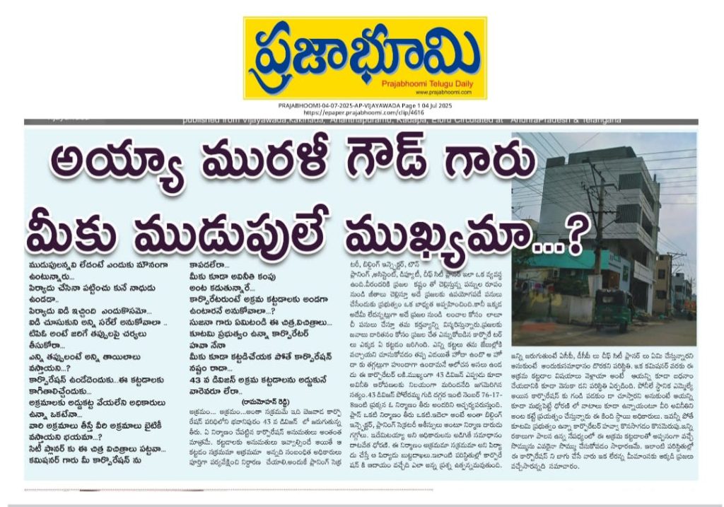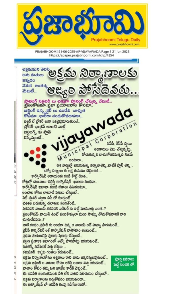 దేవుడు దిగిరాని ఎవ్వరు ఏమయిపోని మారదు లోకం మారదు కాలం”అని సిరివెన్నెల సీతారామశాస్త్రి ఏనాడో చెప్పిన విదంగా ఒకసారి కాదు అనేక మార్లు అవినీతి అధికారులపై స్పందన పిర్యాదు చేసిన కూడా స్పందించని పట్టణ ప్రణాళిక శాఖ అధికారులకు ప్రజాగ్రహం ఎదురవ్వడం తో విధిలేని పరిస్థితులలో అవినీతి ని కప్పిపుచ్చుకునేందుకే ఓ రెండు అవినీతి తిమింగలాలను బదిలీ వేటు వేసి కంటి తుడుపు చర్యలు తీసుకున్నారు.ఏ దేశ చరిత్ర చూసినా ఏమున్నది గర్వకారణం? నర జాతి చరిత్ర సమస్తం పరపీడన పరాయణత్వం! అన్నట్లు గా పట్టణ ప్రణాలిక విభాగంలో కొంత మంది అధికారుల అవినీతి కోకొల్లలు గా ఉందనే బహిరంగ విమర్శలు లేక పోలేదు. ఎల్పీసీ లేకుండా ఒక అవినీతి అనకొండ నాటి టీపీఓ గందం ప్రసాద్ కు పవర్ ఫుల్ బాధ్యతలు కట్టబెట్టిన ఘన చరిత్ర ఉన్న బెజవాడ కార్పోరేషన్ పై ఎంత చెప్పిన అతిశయోక్తి కాదని పిస్తుంది. కొంపలు కొల్లగొట్టి కోట్లు దోచుకున్నారనే బోలెడు విమర్శలు వెల్లువెత్తిన నేపధ్యంలో చీఫ్ సిటీ ప్లానర్ ప్రసాద్ పై ఓ ఎమ్మెల్యే పిర్యాదు తో బదిలీ వేటు వేశారు.గంధం అందరికీ అన్ని గోడలకు గంధం పూసి తనకు అండగా ఉన్న బ్రోకర్లకు బాగానే సరిపెట్టి కార్పొరేటర్ కిరికిరి రెడ్డి తో కాసుల బేరం కుదుర్చుకుని చివరికి కండువా కప్పుకుని పదవి విరమణ చేయగా ఆ స్థానంలో ఆ గంధం అత్యంత ప్రియ శిస్యుడు గా అనోట ఈ నోట చెప్పుకుంటున్న మురళీగౌడ్ ను తాడిగడప మున్సిపాలిటి తట్టుకోలేక బెజవాడ పశ్చిమ నియోజకవర్గ పరిధిలోకి బదిలీ చేసింది ప్రభుత్వం. ఇంకేముంది నీవు నేర్పిన విద్యేగా నీరజాక్ష అని పశ్చిమ నియోజకవర్గ పరిధిలో ఉన్న కొత్త గోడలకు పాత గోడలకు గురువు మిగిల్చిన గంధం పూస్తూ వసంతం తో వసంతాలు జరుపుకున్నారనే ఆరోపణలు వినిపిస్తున్నాయి. గురువు శిస్యుడు కలిసి ఓ మేడ పక్కన మేడ కు అనుమతుల విషయం లో అక్షరాల లక్షలు దోచుకుని దాచుకుని చివరికి ఆ బీల్డింగ్ యాజమాని ఎందుకురా ఈ కట్టడమని కన్నీరు మున్నీరు కారుస్తుంటే ఓ కార్పోరేటర్ పేరు చెప్పి బ్రోకర్ భార్గవ్ గాడు లచ్చలు దండుకుని దాచిపెట్టుకున్న సంగతి ఆలస్యంగా వెలుగుచూసింది. ఇలా ఒకటి కాదు రెండు కాదు దర్గా భూముల్లో షేడ్ ల నిర్మాణాల లో కార్పొరేటర్ కిరికిరి రెడ్డి ఓ వైపు ఈ నీతిలేని అధికారులు ఓ వైపు ఐరన్ యార్డ్ లలో సహా ఇంటి యజమానులను పీల్చిపిప్పి చేస్తుండడంతో చిర్రెత్తి న ప్రజలు స్పందనకు క్యూ కట్టడం,స్థానిక ఎమ్మెల్యే సుజనా, ఎమ్మెల్యే కార్యాల కార్యదర్శి శ్రీధర్ కు పెద్ద సమస్య గా మారినట్లు ఉండటం తో ఇక వీరిపై చర్యలు చేపట్టినట్లు తెలుస్తోంది.అయితే ఈ అవినీతి అధికారుల తీరు ఎండగట్టే ప్రయత్నం ఎవరూ చేసిన నాలుగో స్తంభానికి నిలువెత్తు నిదర్శనం అన్నట్టు అసత్యపు,అబద్ధాల వాయిస్ లు అట్లే ఎగిసిపడ