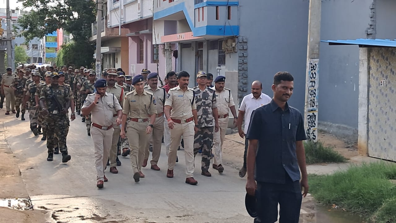 తిరుపతి జిల్లా రామచంద్రపురం మండలం సి. రామాపురం, రామచంద్రాపురం మండల కేంద్రం, కమ్మ కండ్రిగ పంచాయతీల్లో తిరుపతి ఎస్పీ వి. హర్షవర్ధన్ రాజు రాష్ట్ర పోలీసు బలగాలతో ఫ్లాగ్ మార్చి నిర్వహించారు. ఈ సందర్భంగా ఆయన మాట్లాడుతూ జూన్ 4వ తేదీ ఎన్నికల కౌంటింగ్ సందర్భంగా జిల్లా వ్యాప్తంగా 144 సెక్షన్ అమ్ముల్లో ఉందన్నారు. కౌంటింగ్ సందర్భంగా రాజకీయ నాయకులు ఎక్కడ ఊరేగింపులు, బాణసంచా కాల్చడం ఆర్భాటాలు చేయకూడదని హెచ్చరించారు. గ్రామాలలో ప్రశాంతత వాతావరణం ఉండాలన్నారు. ఎన్నికల కోడ్ నిబంధనలు అతిక్రమిస్తే చట్టపరమైన చర్యలు తీసుకుంటామని హెచ్చరించారు.