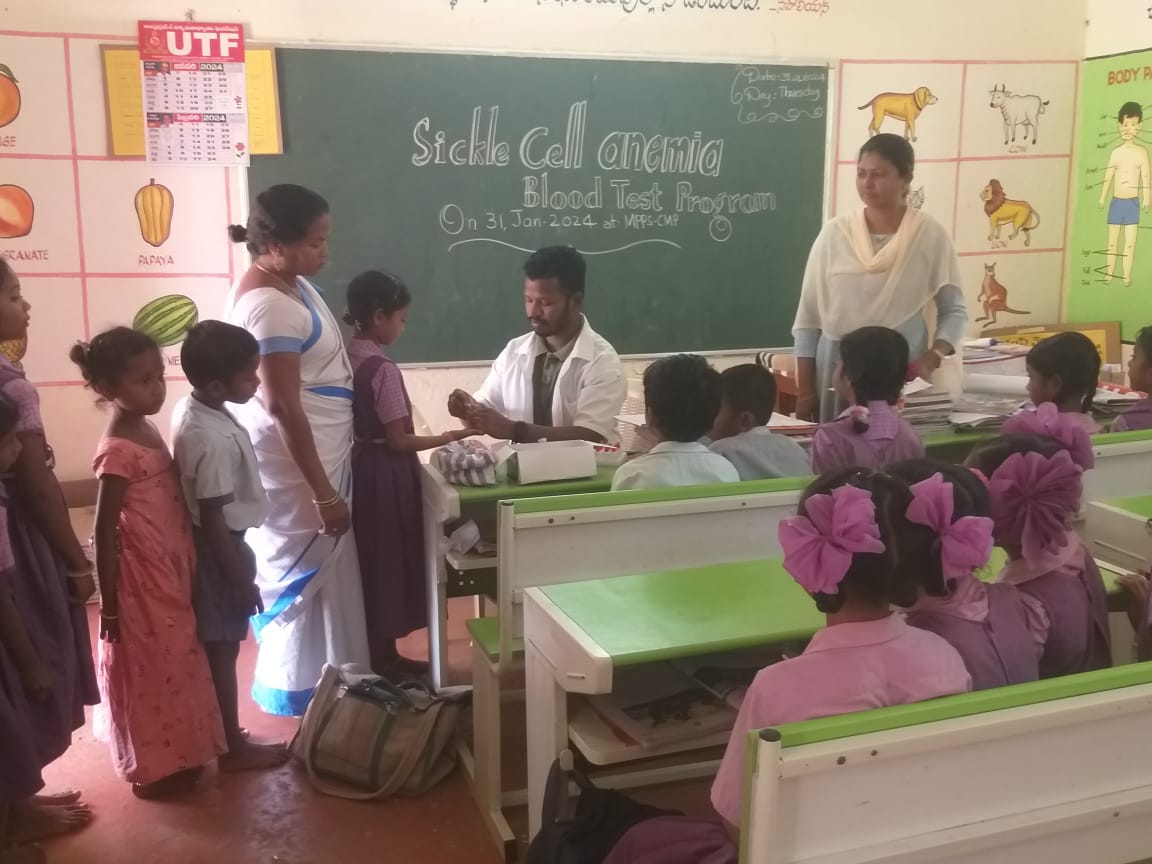మండల పరిధిలోని చిన్నమట్టపల్లి గ్రామ పంచాయతీ పరిధిలోని మండల పరిషత్ ప్రాథమిక పాఠశాల విద్యార్థులకు, హెల్త్ డిపార్టుమెంటు వారు సికిల్ సెల్ ఎనీమియా ( రక్త హీనత) వ్యాధి నిర్ధారణ పరీక్షలు బుధవారం నిర్వహించారు. అనంతరం జరిగిన అవగాహన సదస్సులో కమ్యూనిటీ హెల్త్ ఆఫీసర్ ఎం.సురేశ్ విద్యార్థులనుద్దేశించి మాట్లాడుతూ కేంద్ర, రాష్ట్ర ప్రభుత్వాల సహకారంతో ప్రభావిత ప్రాంతాల్లో 0- 40 ఏళ్ళ మధ్య వయసున్న 7 కోట్ల మందికి అవగాహన కల్పించడం, సార్వత్రిక నిర్ధారణ పరీక్షలు కౌన్సిలింగ్ నిర్వహించాలని భావిస్తున్నట్లు చెప్పారు. సికిల్ సెల ఎనీమియా వ్యాధి వారసత్వంగా వచ్చిన ఎర్ర రక్త కణాల రుగ్మతల సమూహం, రక్తంలో హీమోగ్లోబిన్ ఉత్పత్తి కి కారణమయ్యే జన్యువులు లోప భూయిష్టంగా ఉంటాయన్నారు. సికిల్ సెల్ ఎనీమియా ఉన్న వాళ్ళకు రక్త కణాల సంఖ్య తగ్గడం, కళ్ళు పసుపు రంగులోకి మారడం, తీవ్రమైన ఒళ్లు నొప్పులు, కీళ్ళ నొప్పులు, శ్వాస తీసుకోవడంలో ఇబ్బంది, అలసట, తరుచుగా వచ్చే అంటు వ్యాధులు, గర్భధారణ సమయంలో సమస్యలు లాంటి లక్షణాలతో బాధపడుతుంటారని తెలిపారు. రక్త హీనత వ్యాధి వలన భవిష్యత్తులో అనేక అనారోగ్య సమస్యలకు గురికావలసి వస్తుందని గుర్తు చేశారు. రక్తహీనత వ్యాధి నిర్ధారణ పరీక్షలు అందరూ చేయించుకోవాలని, ఈ వ్యాధి నిర్ధారణ పరీక్షలు పూర్తిగా ఉచితంగా చేస్తున్నామన్నారు. సికిల్ సెల్ ఎనీమియా వ్యాధి నిర్మూలన అందరీ బాధ్యత అని గుర్తు చేశారు. ఈ కార్య క్రమంలో ప్రధానోపాధ్యాయులు సోడే.నాగేశ్వరరావు, సహోపాధ్యాయులు టి.విజయ కుమారి, ఆశా వర్కర్ సోడే.రాములమ్మ, విద్యార్థులు పాల్గొన్నారు.