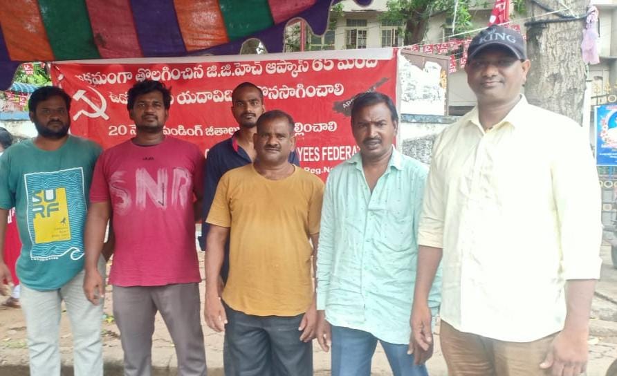 తొలగింపునకు గురైన జిజిహెచ్ ఆప్కాస్ ఉద్యోగుల నిరసన మూడు సంవత్సరాలు కావస్తున్న స్పందించని ప్రభుత్వ తీరుపై సదా విమర్శలు వెల్లువెత్తుతున్నాయి. ప్రభుత్వం తీరుపై కోర్టుకెళ్లి స్టే తెచ్చుకుని ఉద్యోగాలు చేసుకోవాలనుకున్నా ప్రభుత్వ మాత్రం పట్టించుకోవటం లేదని ఆవేదన వ్యక్తంచేశారు. ఎటువంటి ముందస్తు కారణాలు చూపకుండా పనిచేస్తున్న 65 మంది ఆప్కాస్ ఉద్యోగులను తొలగించిన తీరు చూస్తే ఎవరికైనా బాధ కలుగుతుందని ఉద్యోగ నాయకులు రమణ , సత్యాన్నారాయణ లు ఆందోళన వ్యక్తం చేశారు. కాకినాడ ప్రభుత్వ ఆసుపత్రి ఎదుట నిరసన చేపట్టి 1010 రోజుకి చేరుకుంది.నిరసన తెలిపేందుకు వేసిన టెంట్ కూడా శిధిలావస్థకు చేరిన ప్రభుత్వం మాత్రం స్పందించడం లేదని వాపోయారు.ప్రాణాలు తెగించి కోవిడ్ మొదటి రెండవ దశలో పనిచేశామన్నారు.నిరసన శిబిరం ముందు నుంచే మంత్రులు రాజకీయ నాయకులు కలెక్టర్,సూపర్డెంట్ వెళుతున్న మమ్ములను అనాధలుగానే చూస్తున్నారని ఆవేదం చెందారు. ఇప్పటికైనా ప్రభుత్వం మాపై కరుణించి మా ఆకలి కేకలు విని మాకు ఉద్యోగాలు ఇప్పించి కుటుంబాలు నిలబెట్టాలని వేడుకున్నామన్నారు. ఈ నిరసన కార్యక్రమంలో కార్యదర్శి సిహెచ్ ఏడుకొండలు, రమణ, శివ,రాంబాబు సభ్యులు పాల్గొన్నారు.