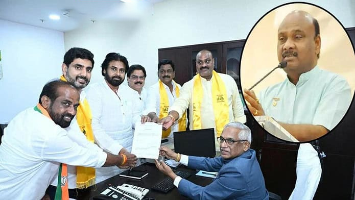 శాసనసభ స్పీకర్గా చింతకాయల అయ్యన్నపాత్రుడు నామినేషన్ దాఖలు చేశారు. టీడీపీ, జనసేన, బీజేపీ కూటమి తరుపున ఆయన నామినేషన్ పత్రాలను అసెంబ్లీ కార్యదర్శికి అందజేశారు. ఈ నామినేషన్ కార్యక్రమంలో డీప్యూటీ సీఎం పవన్ కళ్యాణ్, మంత్రులు లోకేష్, పయ్యావుల కేశవ్, అచ్చెన్నాయుడు, సత్యకుమార్ యాదవ్, నాదెండ్ల మనోహర్ పాల్గొన్నారు. ఇక రేపు అసెంబ్లీలో స్పీకర్ ను ఎమ్మెల్యేలు ఎన్నుకోనున్నారు.టీడీపీ సీనియర్ నేతగా మంత్రివర్గంలో చోటు దక్కని చింతకాయల అయ్యన్నపాత్రుడికి కీలక పదవి ఇవ్వాలని చంద్రబాబు నిర్ణయం తీసుకున్నారు. ఈక్రమంలో ఆయన్ను ఏపీ స్పీకర్గా నియమించేందుకు చంద్రబాబు సిద్దమయ్యారు. అలాగే ఎన్నికల్లో కీలకంగా వ్యవహరించిన జనసేనకు డిప్యూటీ స్పీకర్ పదవి ఇవ్వాలని చంద్రబాబు నిర్ణయం తీసుకున్నట్లు పార్టీ వర్గాలు తెలిపాయి. మండలి బుద్ధప్రసాద్, బొలిశెట్టి శ్రీనివాస్, లోకం మాధవి పేర్ల చంద్రబాబు పరిశీలిస్తున్నారు. ఈ ముగ్గురిలో ఒకరిని డిప్యూటీ స్పీకర్ పదవి వరించే అవకాశం ఉంది. చీప్విఫ్గా దూళిపాళ్ల నరేంద్ర పేరు పరిశీలనలో ఉంది.