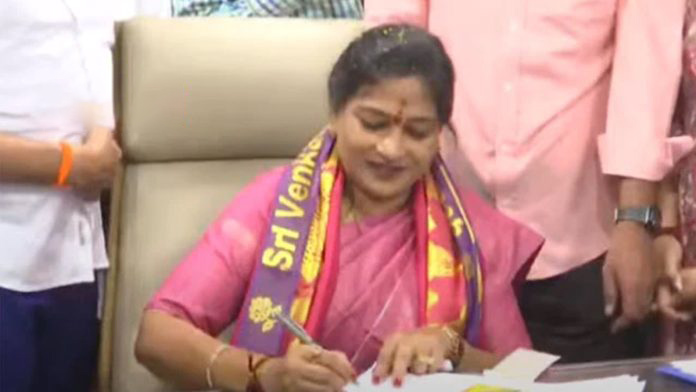 ఆంధ్రప్రదేశ్ హోంమంత్రిగా వంగలపూడి అనిత బాధ్యతలను స్వీకరించారు. సచివాలయంలోని బ్లాక్-2లో ప్రత్యేక పూజలు నిర్వహించిన అనంతరం ఆమె బాధ్యతలను స్వీకరించారు. ఆమెకు వేదపండితులు ఆశీర్వచనాలు అందజేశారు. ఇక హోంమంత్రిగా బాధ్యతలు స్వీకరించడంతో అనితను పార్టీ నేతలతో పాటు ఉన్నతాధికారులు కలసి అభినందనలు తెలిపారు. బొకేలను అందించి ఆమెకు శుభాకాంక్షలను చెప్పారు. చంద్రబాబు నాయుడు ప్రభుత్వంలో ఒక మహిళ హోం మంత్రిగా బాధ్యతలను స్వీకరించడం ఇదే తొలిసారి. ఆమెతో పాటు కుటుంబ సభ్యులు కూడా ఈ కార్యక్రమానికి హాజరయ్యారు.
