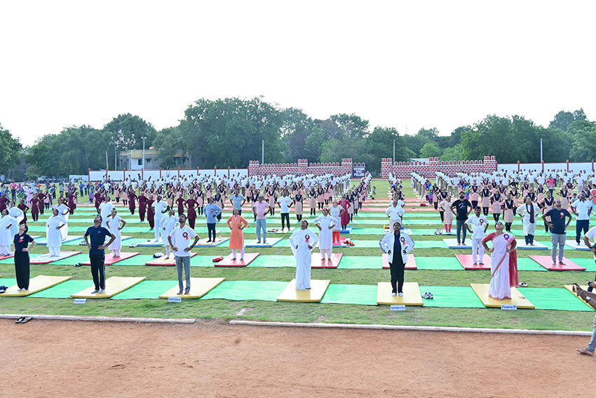 జిల్లా పోలీస్ పరేడ్ మైదానంలో సామూహిక యోగాసనాల నిర్వహణ